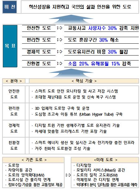 이번 전략의 비전은 “혁신성장을 지원하고 국민의 안전과 편리를 실현하는 도로”로서 안전·편리·경제·친환경 등 4대 중점분야에서 구체화될 계획이다.