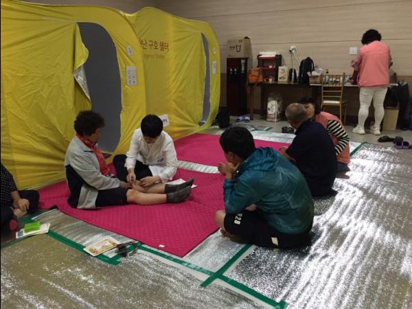 보건소는 지난 8일부터10일, 10월 14일부터 18일까지 8일간 공중보건의사 한의사를 투입하여 1개반 4~6명으로 진료반을 구성, 이재민 임시주거시설 9개소에서 야간진료를 운영해왔으며, 300여명이 넘는 환자들의 건강을 세심하게 살폈다.