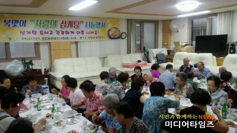 | 지난달 29일 광명2동 광이경로당에서 진행된 광명2동 새마을지도자협의회,부녀회의 삼계탕 나눔행사 모습. ⓒ 미디어타임즈 |