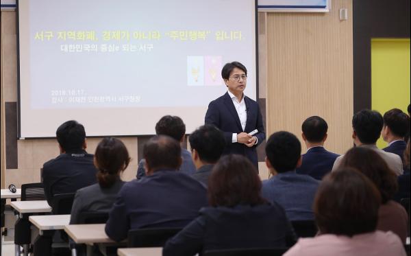 이재현 서구청장은 17일 전주시 전주도시혁신센터에서 전주시 공무원을 대상으로 ‘서구 지역화폐, 경제가 아니라 주민행복이다’란 주제 아래 특강을 진행했다.