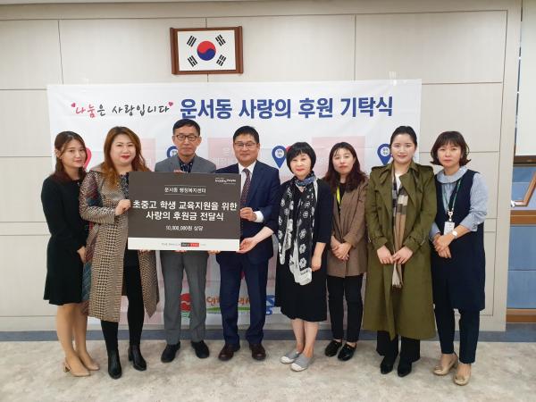 운서동 아동·청소년 복지를 위하여 기탁된 기금은 인천사회복지공동모금회를 통해 관내 취약계층 초·중·고 학생을 양육하고 있는 70여 가구에 책걸상 및 학용품 세트를 지원할 예정이다. 이번 후원으로 그동안 공부를 할 수 있는 최소한의 공간을 가지지 못했던 학생들에게도 학습 환경을 개선함으로써 학습 의욕 고취 및 학업 능률 향상에 상당한 도움이 될 것으로 기대된다.