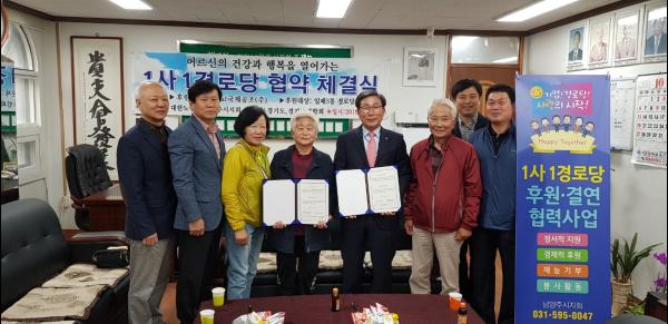 남양주시는 사랑나눔 후원문화 확산과 어르신들이 행복하고 편안하게 경로당을 이용할 수 있도록 ‘1사 1경로당 사랑의 결연’추진으로 관내 71개 취약경로당과 21개 기업체 간 후원 결연을 맺었다.