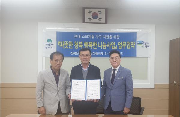평택시 청북읍 지역사회보장협의체는 18일 ㈜메가파크와 지역 내 소외계층 후원을 위한 ‘따뜻한 청북 행복한 나눔사업’ 업무협약을 체결했다.
