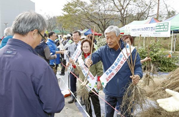 시는 이날 종합운동장 주차장에서 오전 10시부터 나무 배부를 시작해 시민 약 5천명에게 감나무, 대추나무, 석류나무, 블루베리 등 9종 1만4300주을 1인당 3그루씩 선착순으로 분양했다.