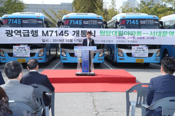 고양시의회(의장 이윤승)는 지난 17일 고양어울림누리 주차장에서 개최된 원당~서대문 M버스(M7145) 개통식에 참석해 광역급행 버스노선 신설을 축하하고 버스 개통을 위해 노력해 주신 관계자들을 격려했다.