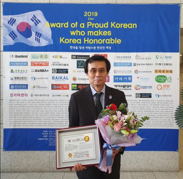 ‘한국을 빛낸 자랑스런 한국인 대상’은 자랑스런 한국인대상 위원회가 주최하고 대한민국신문기자협회, 언론인연합협의회, 국민행복시대가 주관하는 상으로 정치, 경제, 사회, 문화, 예술, 스포츠 분야와 봉사, 선행, 효행 등 일반 및 공직사회에서 투철한 사명감과 확고한 국가관으로 국가발전에 기여한 인사에게 수여한다.