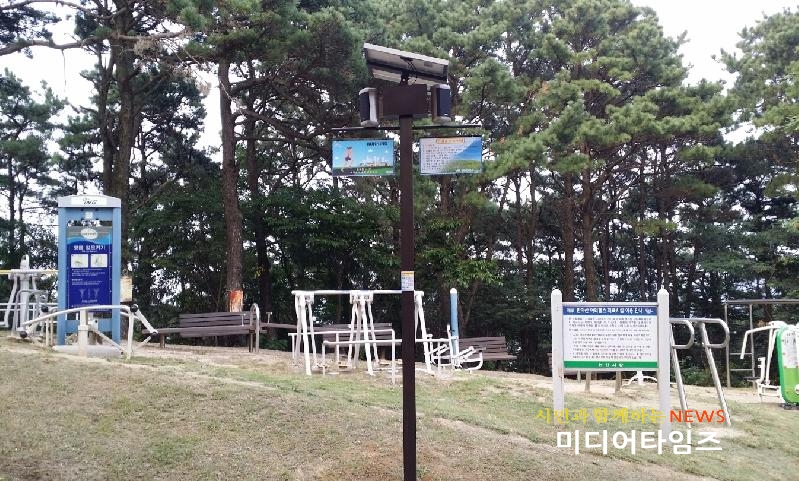 | 반야산 야외헬스 체육시설에 설치된 금연 안내 송출 장비 ⓒ 미디어타임즈 |