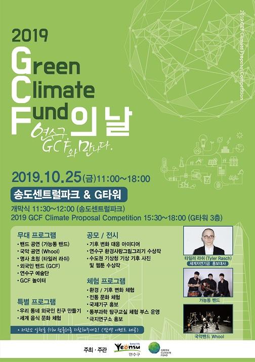 연수구가 오는 25일 송도 센트럴파크와 G타워 일대에서 글로벌 기후변화 선도도시 조성을 위한 ‘2019 GCF 의 날’행사를 개최한다.