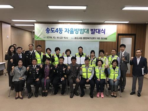 이번 발대식은 범죄 없는 안전한 마을 조성과 청소년 선도에 앞장서기 위한 송도4동 자율방범대의 구성을 널리 알리기 위한 자리로 마련됐다.