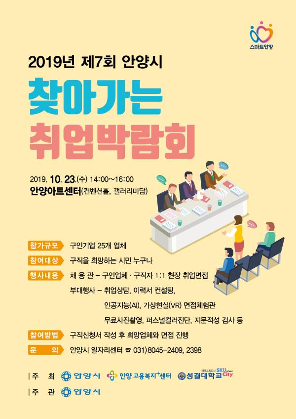 금년도 제7회 안양시 찾아가는 취업박람회가 오는 23일 안양아트센터 컨벤션홀과 갤러리미담에서 열린다.