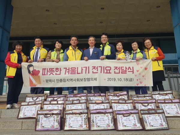 평택시 안중읍지역사회보장협의체는 지난 18일 복지사각지대 및 경제적 어려움을 겪고 있는 소외계층 19가구를 대상으로 ‘따뜻한 겨울나기 전기요’전달식을 가졌다.