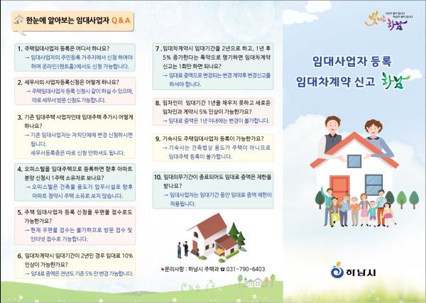 이에 임대사업자의 중요 준수사항에 대한 리플릿을 제작하여 하남시 임대사업자 4,500 여명에게 배부할 예정이다.