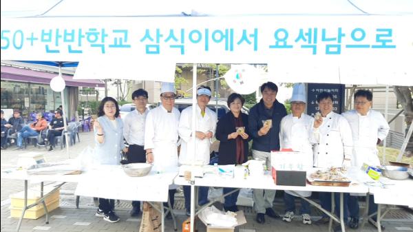 교육과정은 인생설계-역량향상-사회공헌활동의 3단계구성으로 교육 종료 후 자발적이고 지속적인 학습활동과 배움을 지역사회에서 나누는 활동을 장려하고 있다고 전했다. 50+반반학교의 가장 인기 프로그램은 중년남성이 요리와 제빵을 배울 수 있는‘삼식이에서 요섹남으로’과정의 요리 프로그램이다.