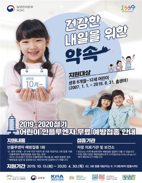 인플루엔자 예방접종은 주소지에 관계없이 보건소 및 전국 어린이 예방접종 지정 의료기관 에서 무료접종이 가능하다.