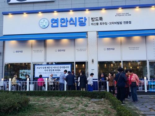 무실동 롯데시네마 1층에 위치한 연안식당은 21일 관내 어르신 등 500명을 초청해 무료 점심 나눔 행사를 펼쳤다.