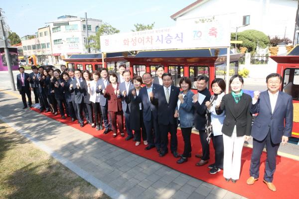 신규 화성어차는 기존보다 엔진 성능과 승차감 등을 개선해 팔달산 경유가 가능하고 객차의 전고를 낮춰 장애인 등 교통약자의 승하차가 용이하도록 제작됐다.