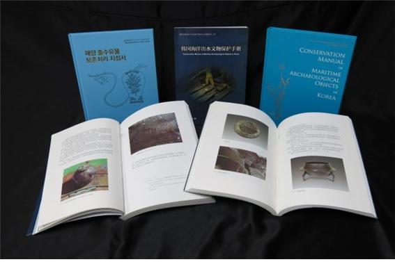 ‘해양 출수유물 보존처리 지침서’는 1976년부터 연구소가 수중발굴한 신안선을 비롯하여 마도1호선, 영흥도선 등 12척의 고선박과 4만 9,000여점의 출수유물에 대한 보존처리 방법과 사례를 상세히 수록한 책이다. 2014년에는 영문판으로 ‘Conservation Manual of Maritime Archaeological Objects in Korea’를 발간해 국외 관계전문가와 박물관 자료실 등 전문기관에 배포하여 아시아 지역에서 선도적인 보존처리 성과를 널리 알렸다.