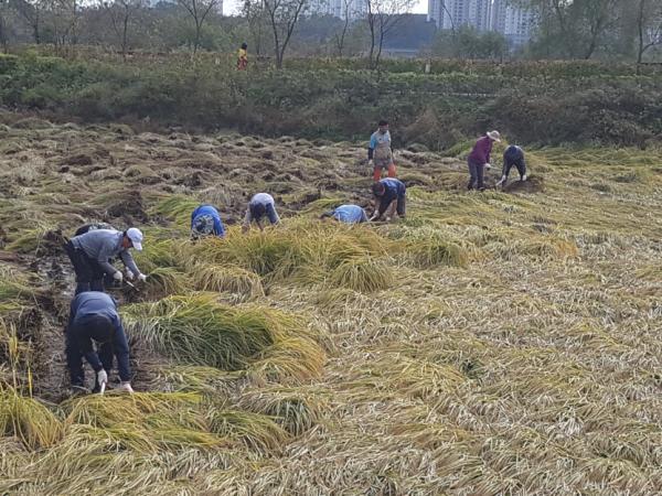 이번 제13호 태풍‘링링’으로 인해 피해를 입은 초평동 농가는 벼가 도복되면서 콤바인을 사용할 수 없게 돼 벼 수확에 큰 어려움을 겪고 있었다.