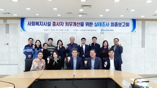 인천광역시는 22일 인천시청에서 사회복지시설처우개선위원회, 처우개선 실태조사 자문위원, 사회복지시설관련 담당공무원 등 30여명이 참석한 가운데 사회복지종사자 처우개선 실태조사 연구 최종보고회를 가졌다고 밝혔다.