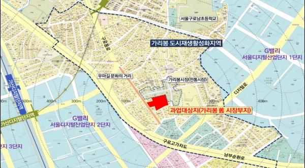 사업이 진행되는 지역은 구가리봉시장 부지다. 1970년대 가리봉시장은 박노해 시인이 “가리봉 시장에 밤이 깊으면/ 가게마다 내걸어 놓은 백열전등 불빛 아래/ 오가는 사람들의 상기된 얼굴마다/ 따스한 열기가 오른다”고 묘사했을 만큼 산업화의 주역 구로공단 노동자들이 쏟아져 호황을 누렸다. 하지만 구로공단의 쇠퇴, 2009년 가리봉시장 화재, 2003년 균형발전 촉진지구 지정과 2014년 해제 등의 우여곡절을 겪으며 지금은 사설 주차장, 고물상 등으로 임시 사용돼 주민들의 재정비 요구가 많았다.