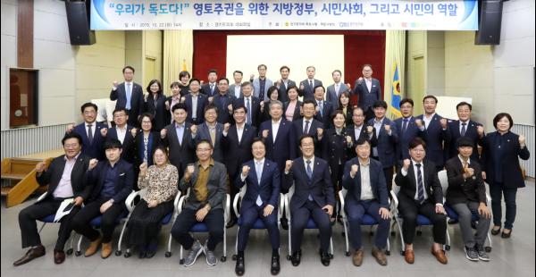 영토주권 수호와 역사 바로 세우기 운동에 앞장섰던 경기도의회 독도사랑 국토사랑회 22일 경기도의회 대회의실서 “우리가 독도다 - 영토주권을 위한 지방정부, 시민사회, 그리고 시민의 역할”을 주제로 토론회를 가졌다.