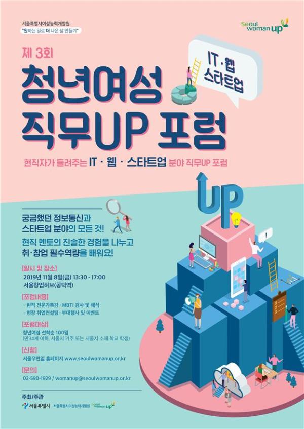 서울시와 서울시여성능력개발원은 11월 8일 13:30~오후 5시 서울창업허브에서 ‘제3회 청년여성 직무업 포럼’을 개최한다.