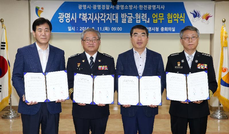 - 광명시, 광명경찰서, 광명소방서, 한국전력공사 광명지사 복지사각지대 발굴‧협력 MOU 체결