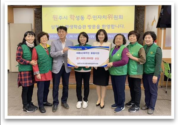 아울러 학성동 새마을부녀회에서 지난 태풍 미탁으로 피해를 입은 이재민들을 위해 금1,000,000원 상당의 쌀을 전달했다.
