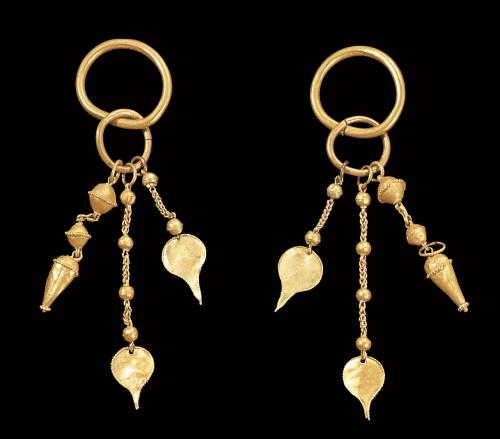 ‘긴 사슬 장식 금귀걸이’는 사슬고리나 S자형 금판고리를 연결해 기다란 형태를 만든 것으로 신라나 백제에서는 찾아보기 힘든 가야의 독창적인 기술을 보여주고 있다. 이와 유사한 형식의 금귀걸이는 대체로 5세기 가야 문화권에서 주로 유행했으며, 5세기 후반~6세기에는 일본에도 영향을 끼쳐 가야귀걸이와 유사한 작품이 다수 전래되고 있다.