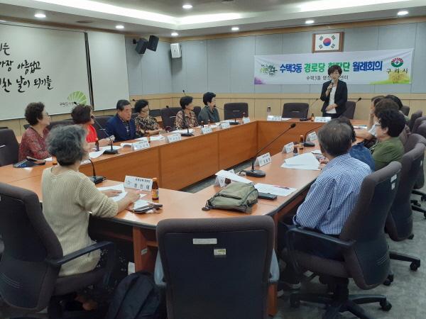 구리시 수택3동에서는 지난 22일 수택3동 경로당협의회 주관으로 관내 15개소 경로당 회장단이 참석한 가운데 10월 월례회의를 개최했다.