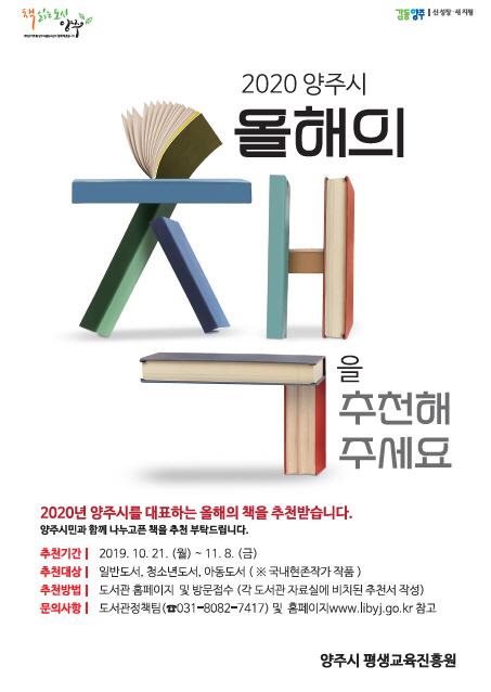양주시는 책으로 하나 되는 ‘책 읽는 도시 양주’조성을 위해 오는 11월 8일까지 ‘2020년 양주시 올해의 책’을 추천받는다고 밝혔다.
