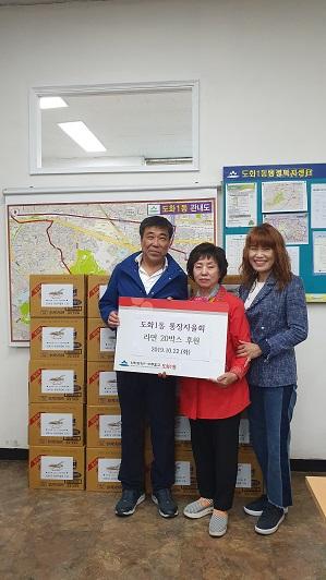 인천 미추홀구 도화1동 행정복지센터는 도화1동 통장자율회가 지난 22일 라면상자 20개를 기탁했다고 23일 밝혔다.