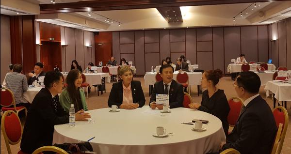 지난 22일 오전 이 구청장은 알마티 현지 바이어와 관내 기업의 1:1상담이 마련된 종합상담장을 찾아 ㈜임산업 등 남동구 지역 18개사 기업들의 성공적인 비즈니스 미팅을 격려했다.