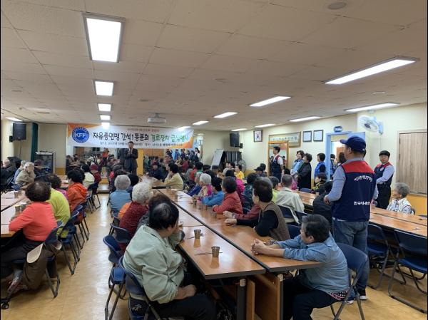 인천 남동구 간석1동은 지난 22일 간석1동 행정복지센터 2층에서 한국자유총연맹 간석1동 분회주관으로 어르신 경로잔치 급식행사를 가졌다.