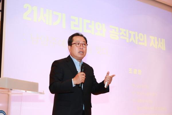 조광한 남양주시장은 23일 경기북부지방경찰청 다산홀에서 개최된 ‘경·바·시’ 행사에서 경기북부지방경찰청 직원 200여명을 대상으로 ‘21세기 리더와 공직자의 자세’라는 주제로 특강을 실시했다.