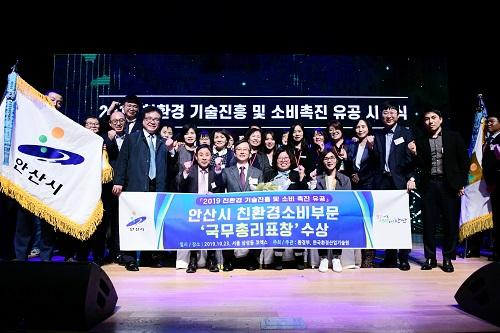 안산시는 환경부 주최로 열린 ‘2019 대한민국 친환경대전’에서 친환경 기술진흥 및 소비 촉진 유공을 인정받아 전국 지자체중 유일하게 국무총리표창을 수상했다고 24일 밝혔다.