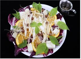 ‘인삼두부샐러드’ 샐러드는 고른 영양소 섭취와 칼로리 부담을 낮추는 데 좋은 요리법이다.