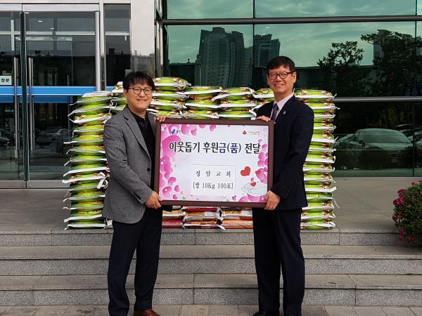이날 기탁한 쌀은 교회 신자들이 십시일반 모은 성금으로 마련한 것이다.