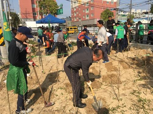 이날 도심 숲 조성은 작전서운동 새마을협의회, 새마을부녀회, 주민자치위원회, 통장협의회, 보장협의체, 방위협의회, 민방위협의회, 바르게살기위원회 8개 단체 회원이 참석해 무궁화 꽃을 식재하고 주변지 환경정비를 실시했다.