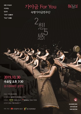 국내 최초 가야금오케스트라 숙명가야금연주단은 오는 30일 수요일 오후 7시 30분에 인천 중구문화회관 공연장에서 ‘가야금 For You’공연을 펼친다.