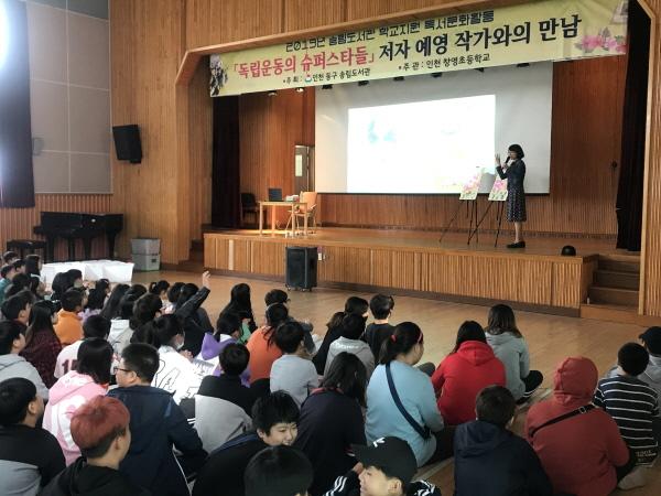 인천 동구 송림도서관은 지난 23일, 창영초등학교에서 학교지원 독서문화활동의 일환으로 예영 작가와의 만남의 날을 운영했다.