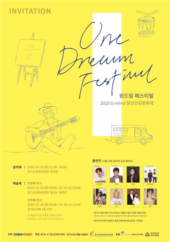 지난 10일 ‘세계 정신건강의 날’을 맞아 정신질환에 대한 인식 개선을 도모하기 위한 ‘축제한마당’인 ‘2019 G-mind 정신건강문화제 One Dream Festival’이 24일 경기도문화의전당에서 정신재활시설 이용자와 가족, 도민 등 1,500여명이 참석한 가운데 성황리에 개최됐다.