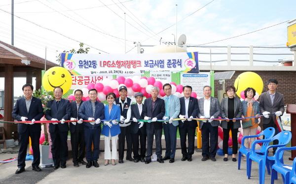 평택시 유천2동은 24일 정장선 평택시장을 비롯해 도·시의회 의원, 마을주민 등 60여명이 참석한 가운데 LPG소형저장탱크 보급사업 준공식을 개최했다.