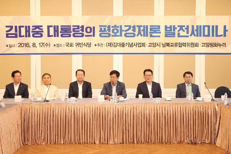 이어 김대중 사상계승 발전위원장으로서 ‘김대중 대통령의 햇볕정책의 발전적 계승방안’에 대해 발표하고, 최근 고양시가 발표한 바 있는 ‘통일 한국의 실리콘밸리’ 조성 계획을 중심으로 북핵 개발 저지와 한반도 평화정착을 위한 10가지 정책을 설명했다.