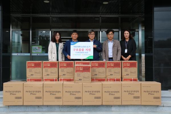 농협강릉시지부는 지난 24일 강동면 태풍피해 수재민가정에 필요한 전기주전자와 하이라이트세라믹렌지 각 62개를 전달하고 피해 주민을 위로했다.