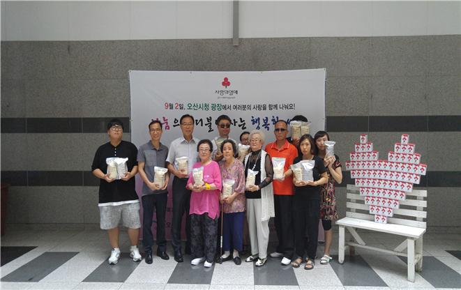한편 (사)경기도 시각장애인연합회 오산시지회(회장 정성영)가 따뜻한 사람이 가득담긴 쌀 한 봉지씩을 들고 나눔 캠페인에 동참하여 어려운 이웃을 돕는 작은 사랑을 몸소 실천해 귀감을 보였다.