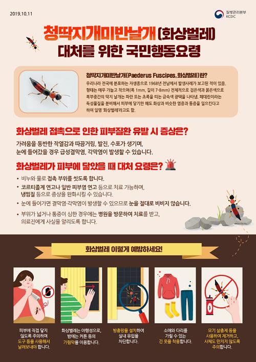 부천시보건소는 최근 전국에서 일명 ‘화상벌레’라고 불리는 ‘청딱지개미반날개’ 출몰 신고 건수가 늘고 있다면서 시민들에게 각별한 주의를 당부했다.