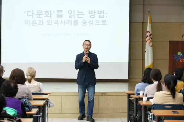 교육에는 주민과 외국인 단체 실무자 등 120여명이 참석한 가운데 클래식 협주, 샌드아트 등 문화공연이 진행됐다. 이어 박경태 성공회대학교 교수가 강사로 나서 다문화사회와 다양성에 대한 이해를 주제로 강의했다.