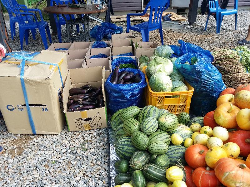 | 시흥정왕푸드뱅크 사업소에 전달 된 농작물 사진. ⓒ 미디어타임즈 |
