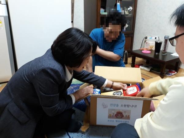 동두천시 보산동 윤영순 동장은 지난 24일 관내 기초생활수급 독거노인 2가구를 직접 방문해, 10여 가지 생활용품이 담긴 생필품상자를 전달하고, 생활환경을 살펴보며 애로사항이 있는지 확인했다.